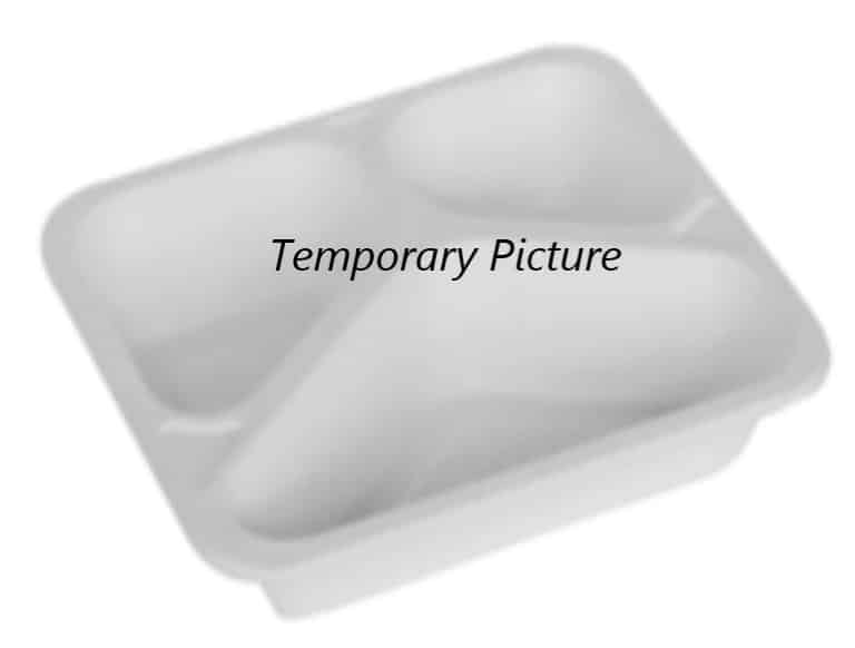 1070ml Rectangular White Bagasse Top Seal Tray – 3 Cavity